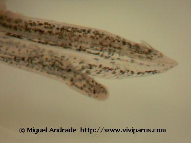 Gonopodium ( intromittent organ or copulatory organ ). Picture take and publish by courtesy of Maria João to whom I am very grateful. |